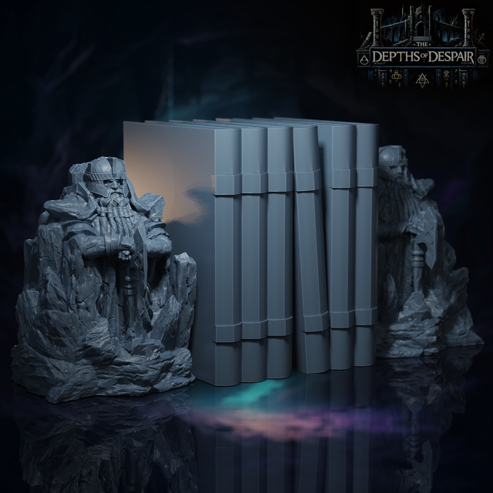 Our most recent scenery piece, The Argonaths of the Abyss, can be playable scenery that represents the kind of classic Dwarven architecture familiar from fantasy epics or the two Argonaths can be printed as bookends for a collection of your favorite TTRPG books fantasy novels.